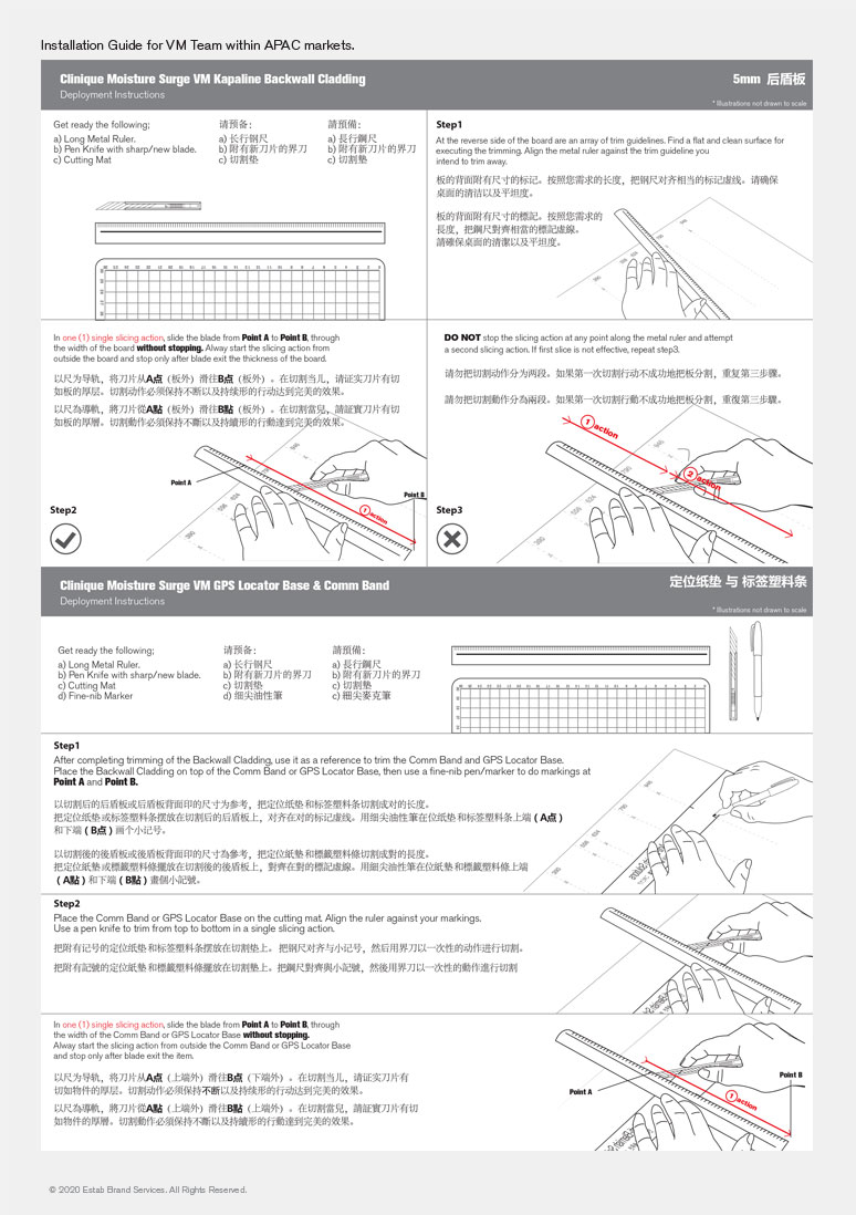 To ensure consistency of Visual Merchandising in other countries, we also provided an installation guide for all products that was sent abroad. Installation guide was designed to include 2 languages; English and Chinese.